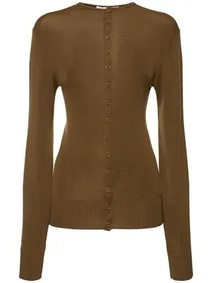 에디터리스트 - LEMAIRE seamless wool knit fitted cardigan - brown