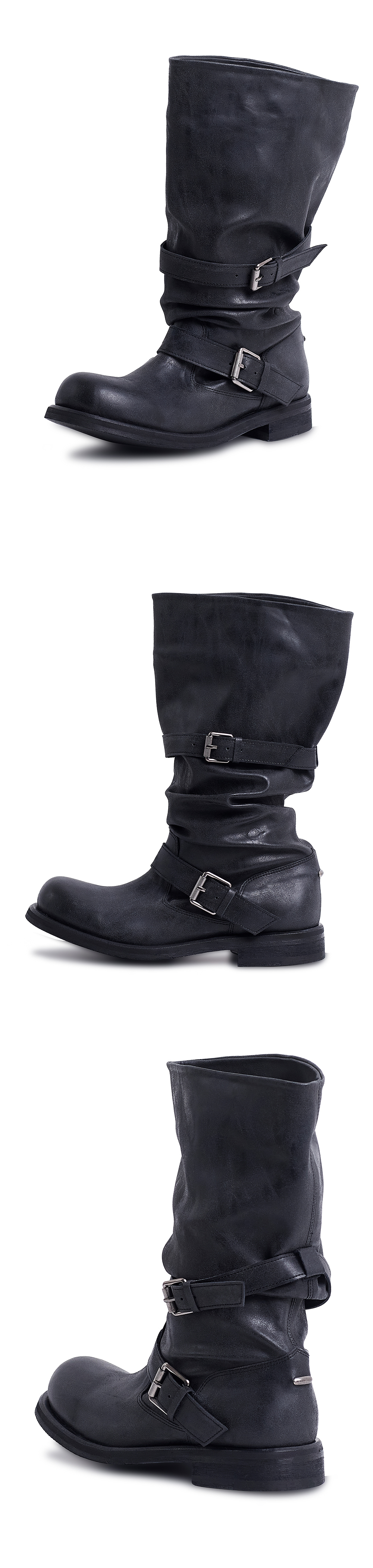 자연스러운 주름이 강조되는 부츠로 아주 멋스러운 아이템이에요. 윗단을 접어서 신을 수도 있고 다양한 스타일링을 할 수 있어요.