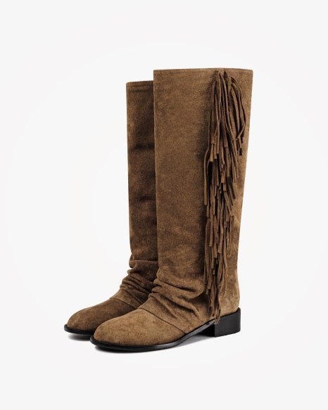FRINGE DETAIL LONG BOOTS (TAN) - PAAR PHY
