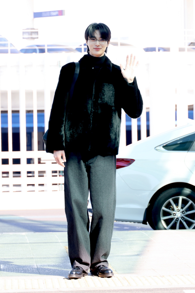 이 날 변우석은 머리부터 발끝까지 블랙 컬러로 맞춘 올 블랙 컬러로 시니컬한 무드를 선보였습니다. 뭘 입어도 멋있는 변우석이지만 프라다의 시어링한 자켓이 더해져 더욱 스 타일리시 해 보이는데요!
