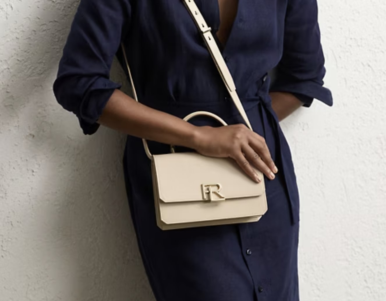 정수정이 들고 있는 클래식 가방의 이름은 ‘RL 888 박스 카프스킨 탑 핸들’입니다. 중앙에 있는 큰 RL 로고 클로저 장식은 랄프로렌의 정체성을 드러내고 있죠. 또 송아지와 양가죽 혼합으로 제작되어 부드러운 가죽 소재감을 느낄 수 있는 백이라고 합니다.