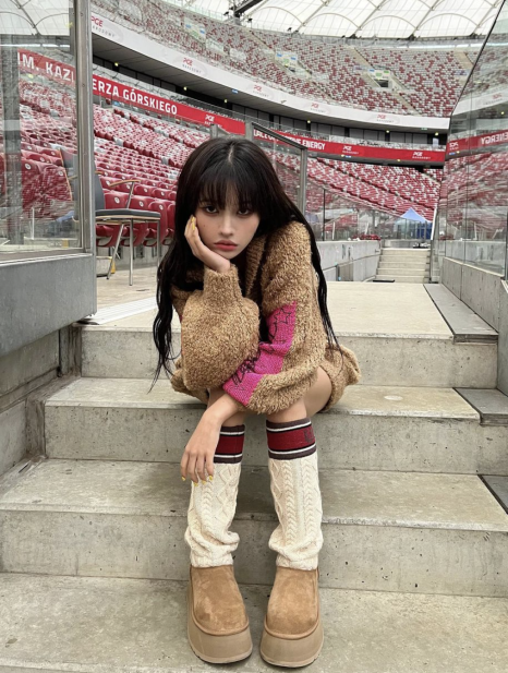 전소연 어그 레그워머 - 어그 스웨터 레터 부츠