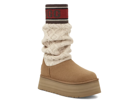 몇 년 전 시작되어 지금까지 은은한 열기를 유지하고 있는 레그워머 트렌드를 기억하시나요? 이에 어울리게 어그에서는 레그워머가 연상되는 스웨터 레터 부츠를 출시하였습니다.