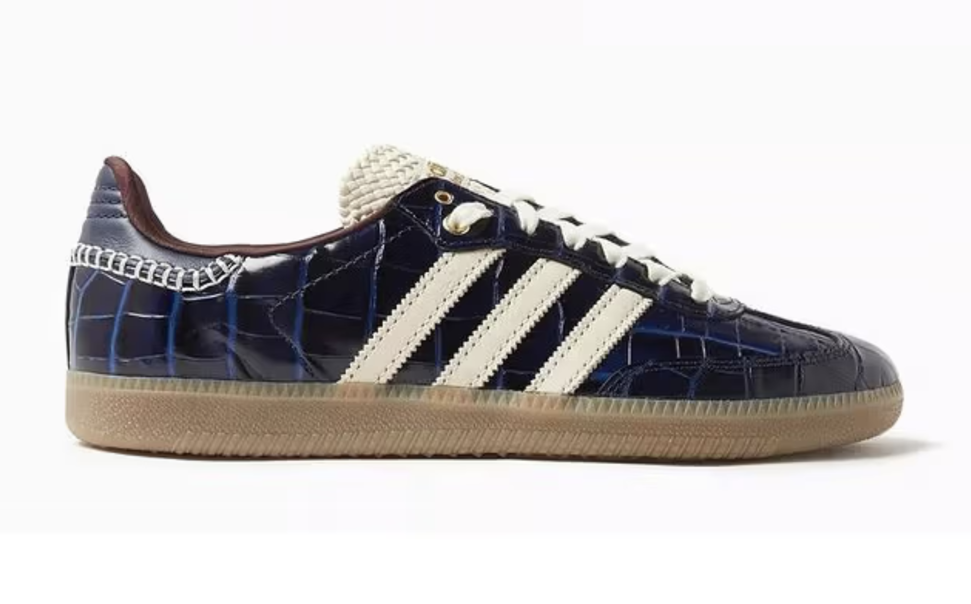 웨일즈보너 아디다스 협업 컬렉션 삼바는 브라운 컬러와 네이비 컬러 두 가지로 구성되었고, 슈퍼스타 역시 동일한 인조 악어 가죽 패턴으로 감싸졌다는 것이 큰 특징!