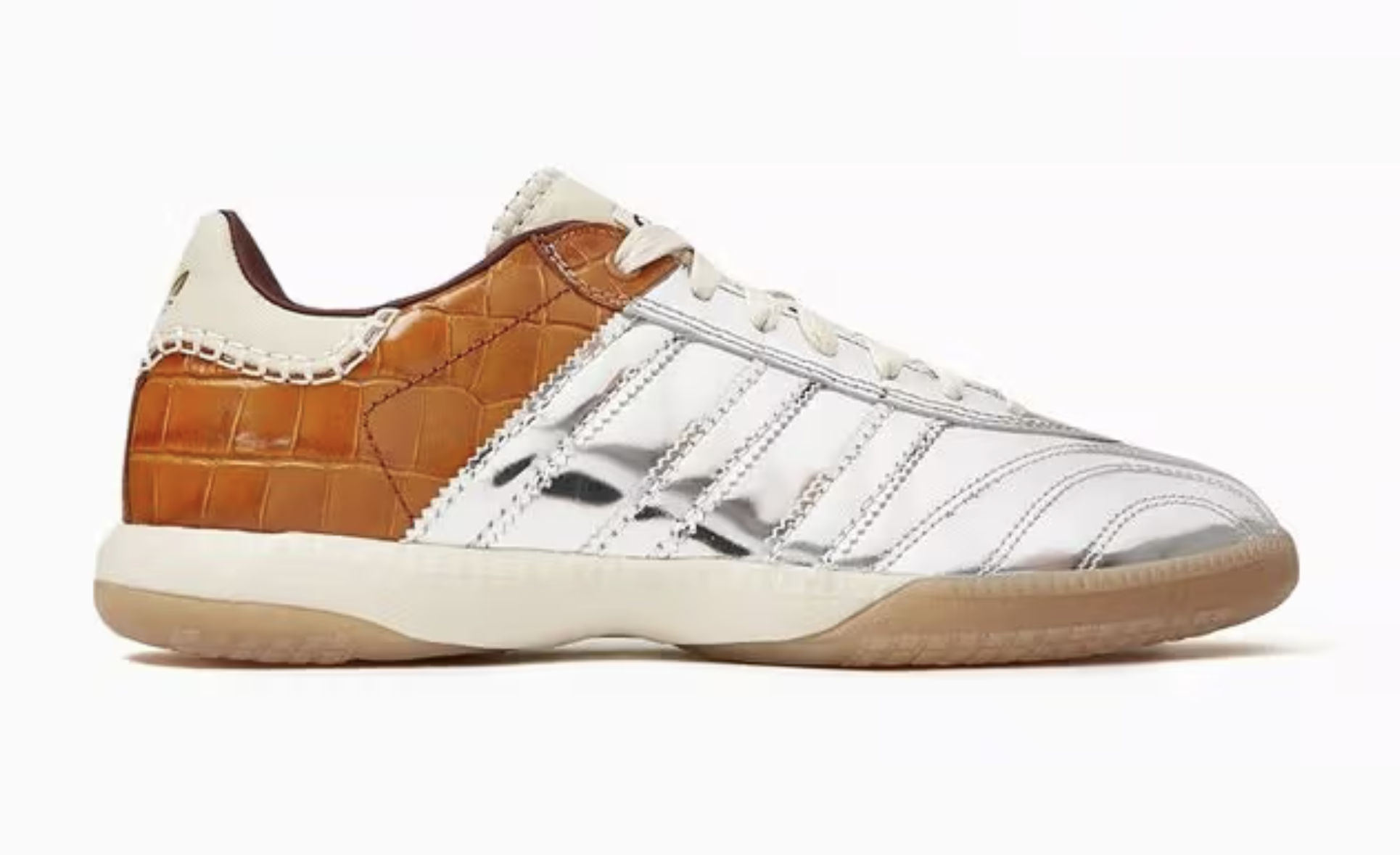 개인적으로 공개된 스니커즈 중에는 브라운 톤의 인조 악어 가죽 삼바가 마음에 쏙 드는데요. (저는 슈퍼스타 보다는 삼바를 좋아합니다 ㅎㅎ) 역시나 눈에 띄는 독특한 디자인은 브라운 톤의 인조 악어 가죽에 실버 소재가 더해져서 스타일리쉬함을 엿볼 수 있는 디자인이 아닌가 싶습니다. 스니커즈에 새겨진 자수 디테일도 귀여워서 웨일스보너 스타일을 좋아하는 분들에게는 큰 인기를 얻지 않을까 싶습니다.