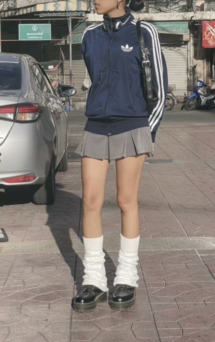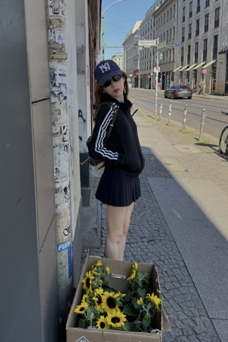 스포츠 웨어를 넘어 일상복까지 점령한 아이다스 져지의 인기가 다시 돌아왔습니다. 한때는 나이키였다면 지금은 아무래도 아디다스가 대세를 이루고 있는 것 같은 요즘, 사진 속 태연은 썬글라스와 네이비 플리츠스커트로 미니멀하면서도 시크한 느낌을 물씬 내며 스타일링 센스를 뽐내고 있죠.