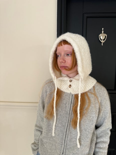 시오르 알루 바라클라바는 목 뿐 아니라 어깨까지 내려오는 기장감으로 되어 있으며 목 부분에는 긴 스트링 두 줄이 있어 늘어뜨려 착용하거나 리본 모양으로 묶어 더욱 러블리한 느낌을 연출할 수 있어요, 굳이 매듭을 짓지 않더라도 목 부분에 단추가 있어 쉽게 벗겨지지 않으니 이 점도 참고해 두시면 좋을 것 같아요!