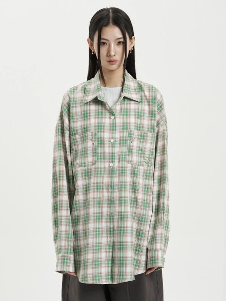 제품분류 : 상의 > 셔츠/블라우스 브랜드 : 셋업이엑스이(SETUP-EXE) 제품번호 : SETUP24SS044 제품 : OVER CHECK SHIRT / GREEN - 80,100