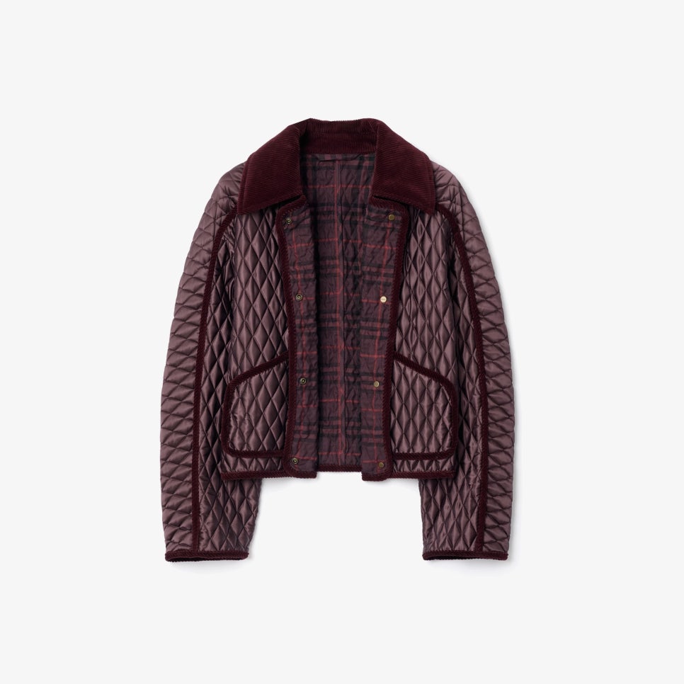 크롭 퀼팅 나일론 플로리스톤 재킷 (마호가니 브라운) - 여성 | 공식 Burberry®