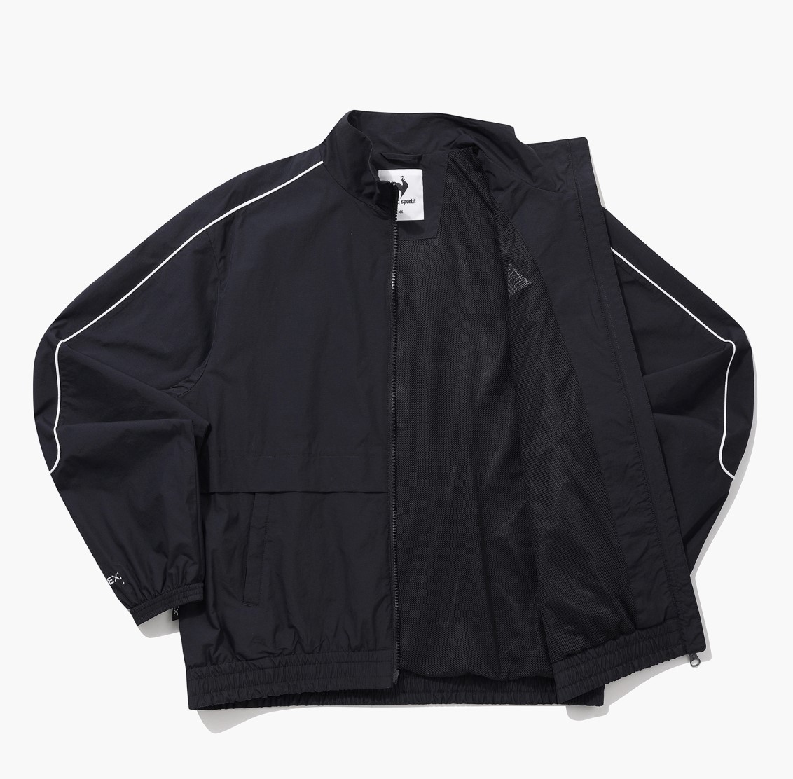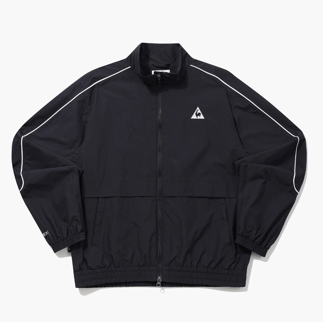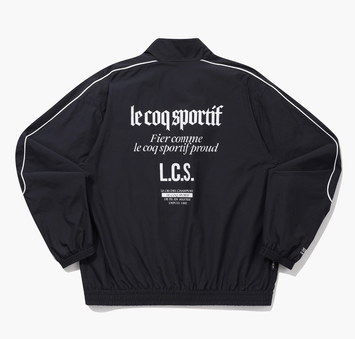팔 부분의 흰 파이핑 포인트 및 뒷 편의 르꼬끄 그래픽 레터링은 해당 자켓의 스포티한 무드를 더욱 강조하고 있습니다. 이는 코디 고민 없이 편하게 착용할 수 있는 데일리 자켓으로 특히 학생들에게 제격인 아이템이라고 할 수 있습니다.