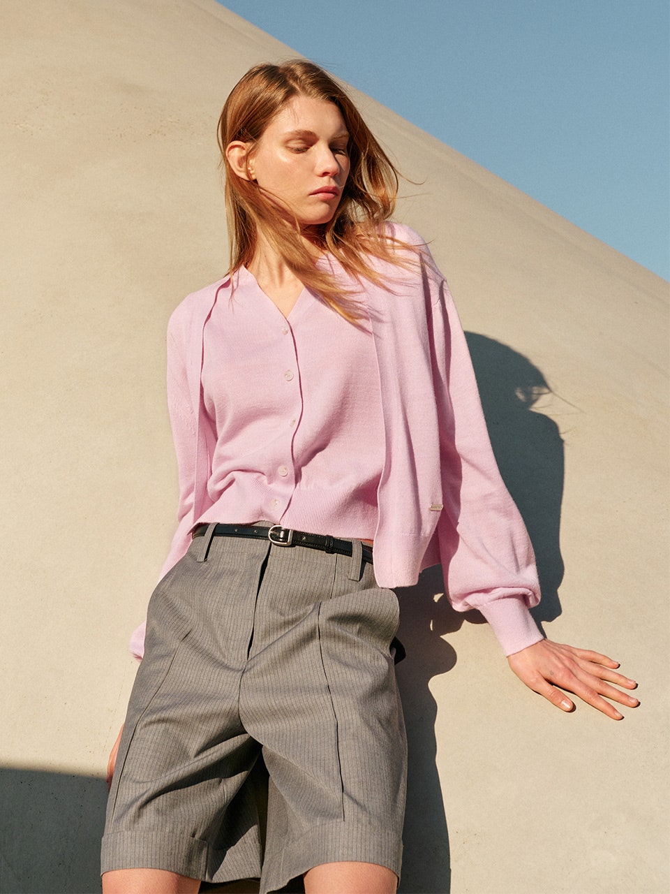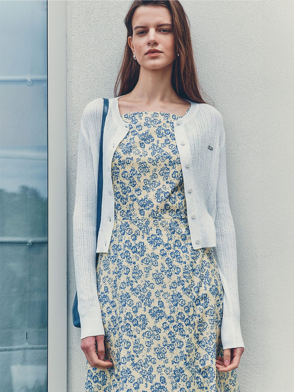 크롭한 기장감과 긴 기장의 슬리브로 에센셜하게 착용할 수 있는 제품이죠. 하지만 앞서 소개드린 레이어드 니트 가디건에 비해 얇아 초가을에 활용하는 것을 추천드립니다. 최화정이나 모델처럼 롱 원피스 위에 쓱 걸치기도 좋고, 허리에 둘러 착용하는 것도 멋스러울 것 같네요!