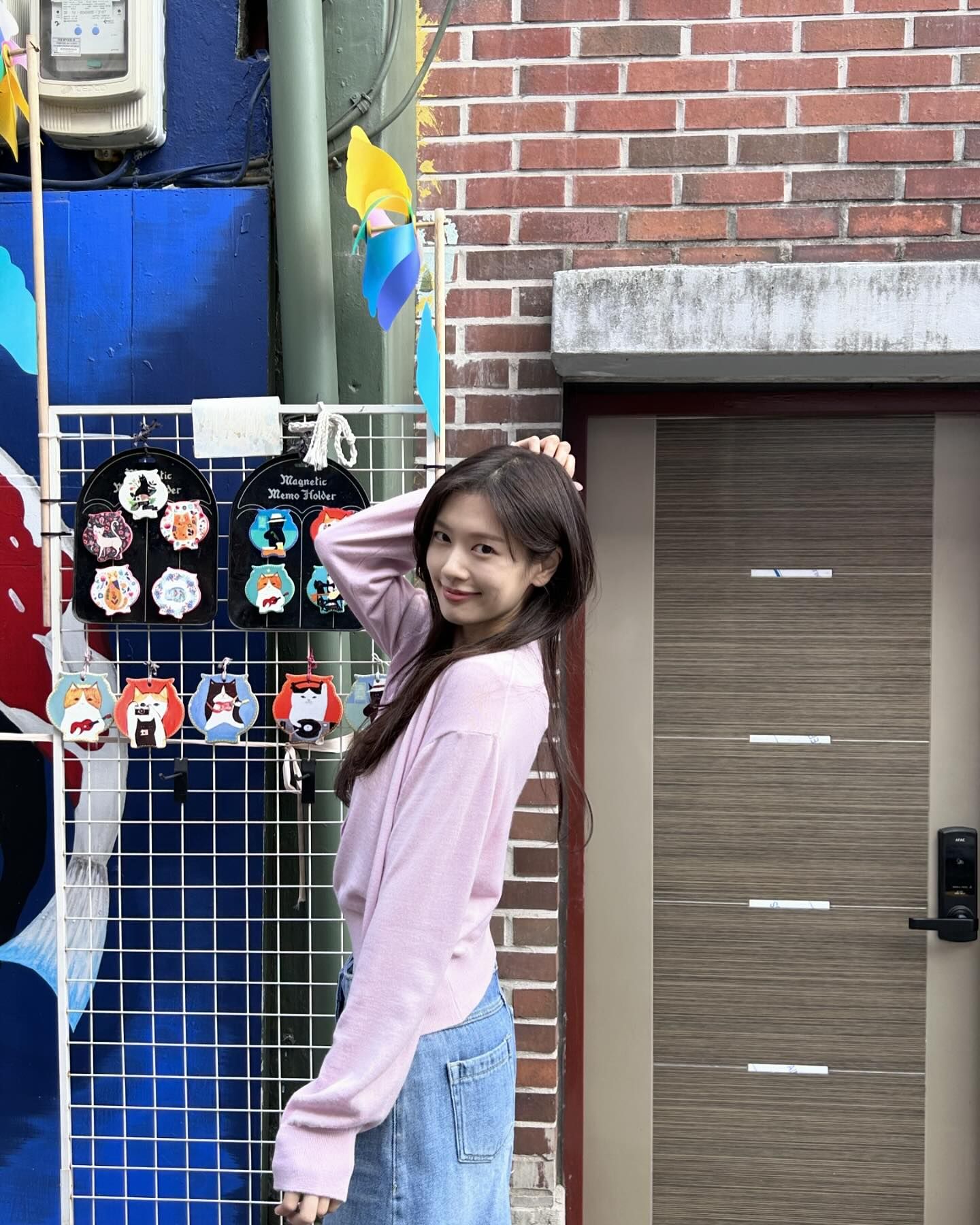 가디건 밑단 시보리 부분에 루에브르만의 아이코닉한 금속 라벨로 포인트를 준 부분도 신선하네요.