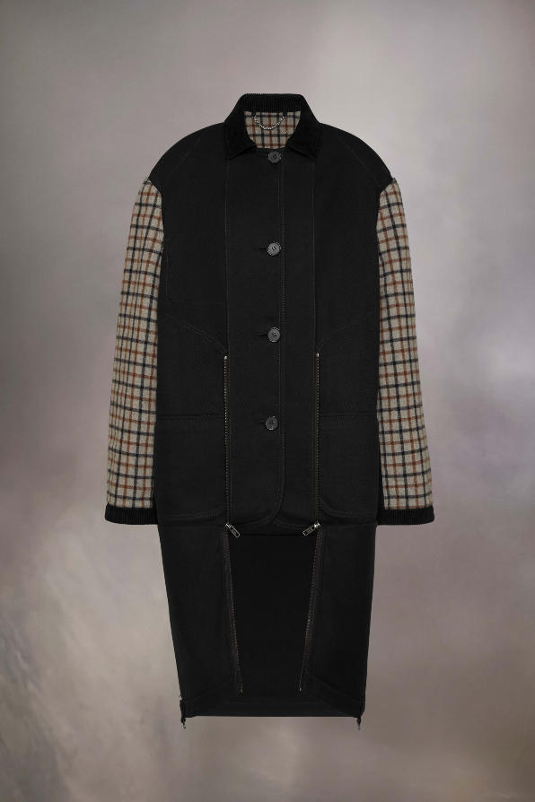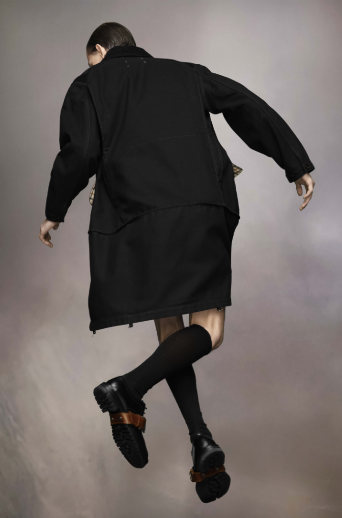 이나영이 착용한 코트는 메종 마르지엘라의 헤비 코튼 더블 코트인데요, 헤비 코튼 및 울 슬리브로 제작되었습니다. 해당 아우터는 팔 부분만 대조적인 디자인으로 되어 있는 것이 큰 특징인데요, 사실 보이는 것이 다가 아닙니다. 이 코트에 숨겨진 비밀은 모델 착용샷처럼 코트를 여러 방법으로 변형하여 입을 수 입을 수 있다는 것이죠.