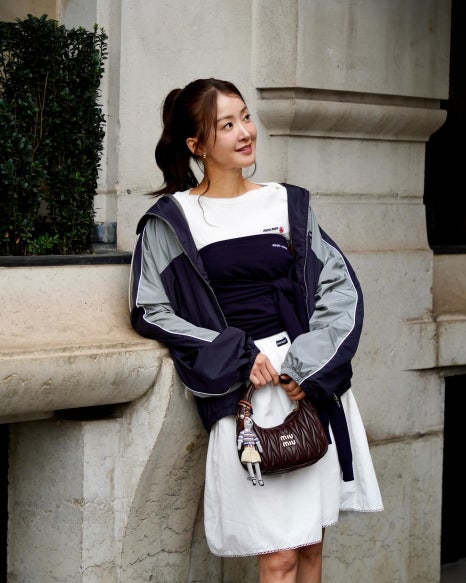 기사가 난 지 얼마 되지 않아 최근 열린 미우미우 행사장에서 모습을 드러냈습니다. 이 날 이시영은 더욱 아름다워진 모습으로 등장해 화제가 되었는데요. 이시영은 퍼플, 그레이 톤의 미우미우 윈드 브레이커와 원피스를 믹스매치해 스포티한 룩을 선보였습니다.