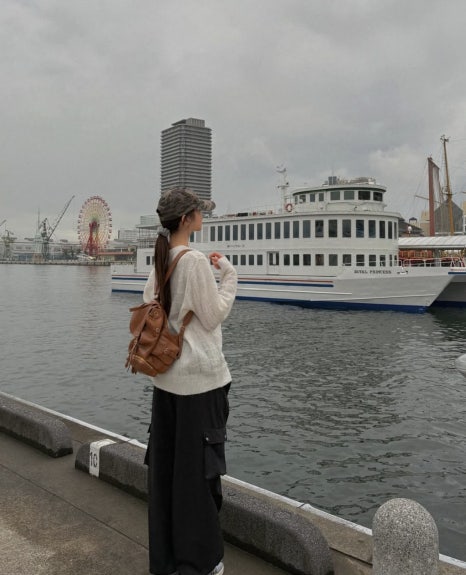 장원영은 검정 카고 팬츠와 희색 니트의 자연스러운 코디와 함께 해당 가방을 매 주었는데요, 이처럼 캐주얼한 룩에 꾸안꾸 느낌과도 너무나 매치가 잘 되어 데일리 럭셔리 제품의 표본이라고 할 수 있겠네요.