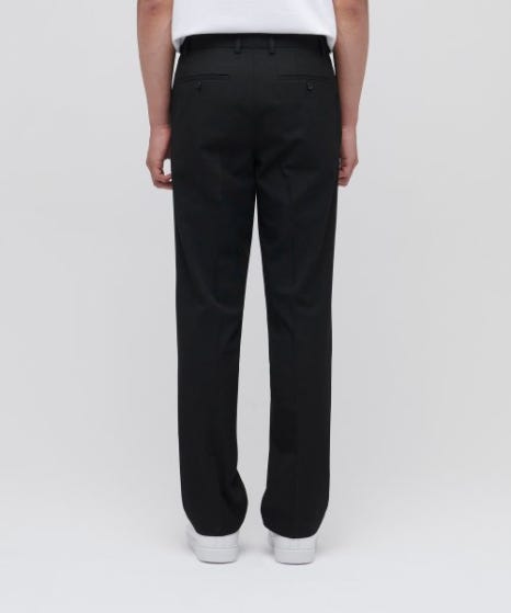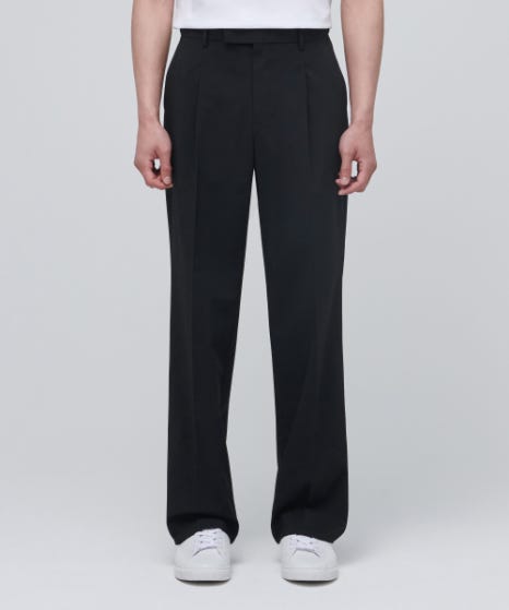 이름 그대로 밴딩이 숨겨져 있는 슬랙스다. 허리 양 옆의 엘라스틱 밴드가 겉에서는 보이지 않는 히든 밴딩 구조로 이루어져 깔끔하면서도 편안한 착용감이 특징. 또한 세미 와이드 핏으로 누구나 부담 없이 입을 수 있으며 앞서 추천한 베이식 블레이저와 동일한 원단으로 셋업 수트처럼 입을 수 있다는 점도 알아 둘 것.