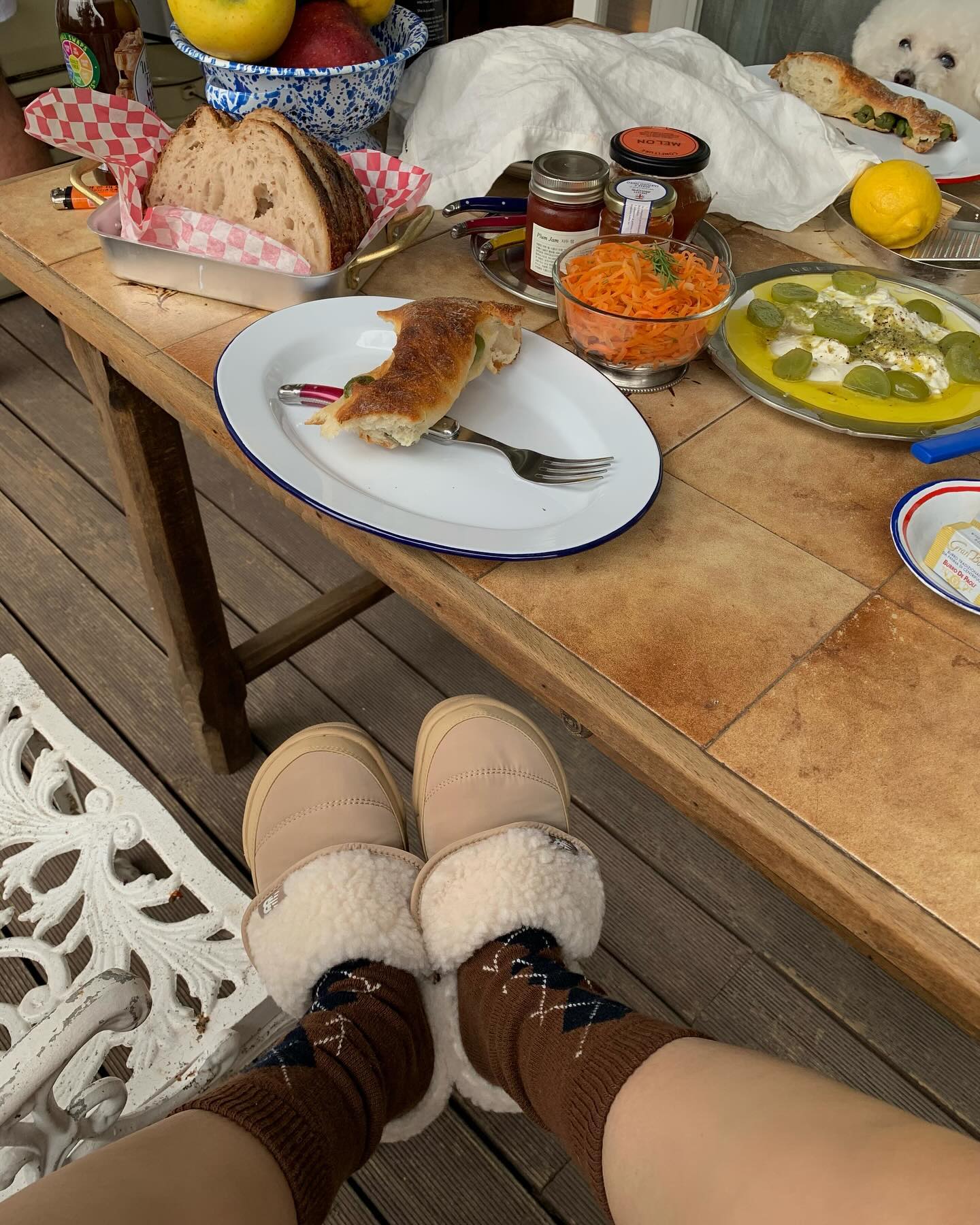 한동안 겨울 부츠 부동의 1위 자리를 유지하던 어그 부츠의 경쟁자가 등장했습니다. 바로 패딩 슈즈인데요. 귀여운 아웃핏에 따뜻한 보온성까지 패딩 부츠가 올 겨울 핫 할 예정입니다. 차정원은 다양한 패딩 부츠 중 시어링 안감으로 보온성을 높인 뉴발란스의 패딩 슈즈를 선택했습니다. 인디고 데님 스커트에 카멜 컬러 패딩 슈즈 그리고 아가일 패턴 양말로 스타일리시한 면모를 선보인 것이죠!