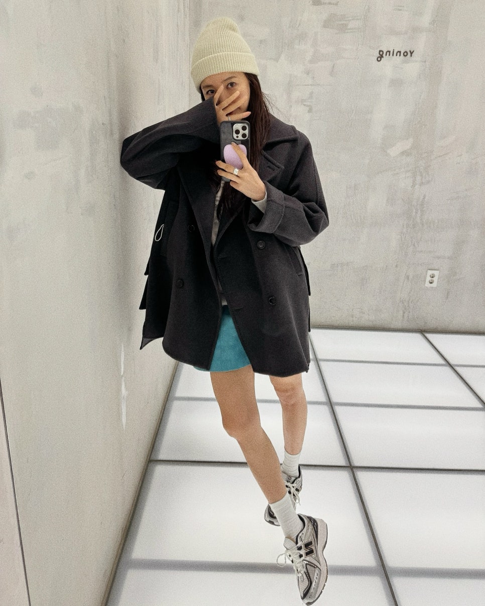 윤은혜는 자기 관리를 잘 하기로도 유명하지만 스타일리시한 사복 패션으로도 꽤나 알려져 있는데요. 그 중에서도 그녀의 데일리 룩, 사복 패션에서 자주 찾아볼 수 있는 운동화가 있답니다. 바로 하나씩은 가지고 있는 국민 운동화 뉴발란스 제품인데요. 윤은혜는 최근에도 플레어 디테일이 돋보이는 하프 코트에 스커트를 매치한 뒤 뉴발란스 운동화를 매치해 쿨한 아웃핏을 선보였습니다.