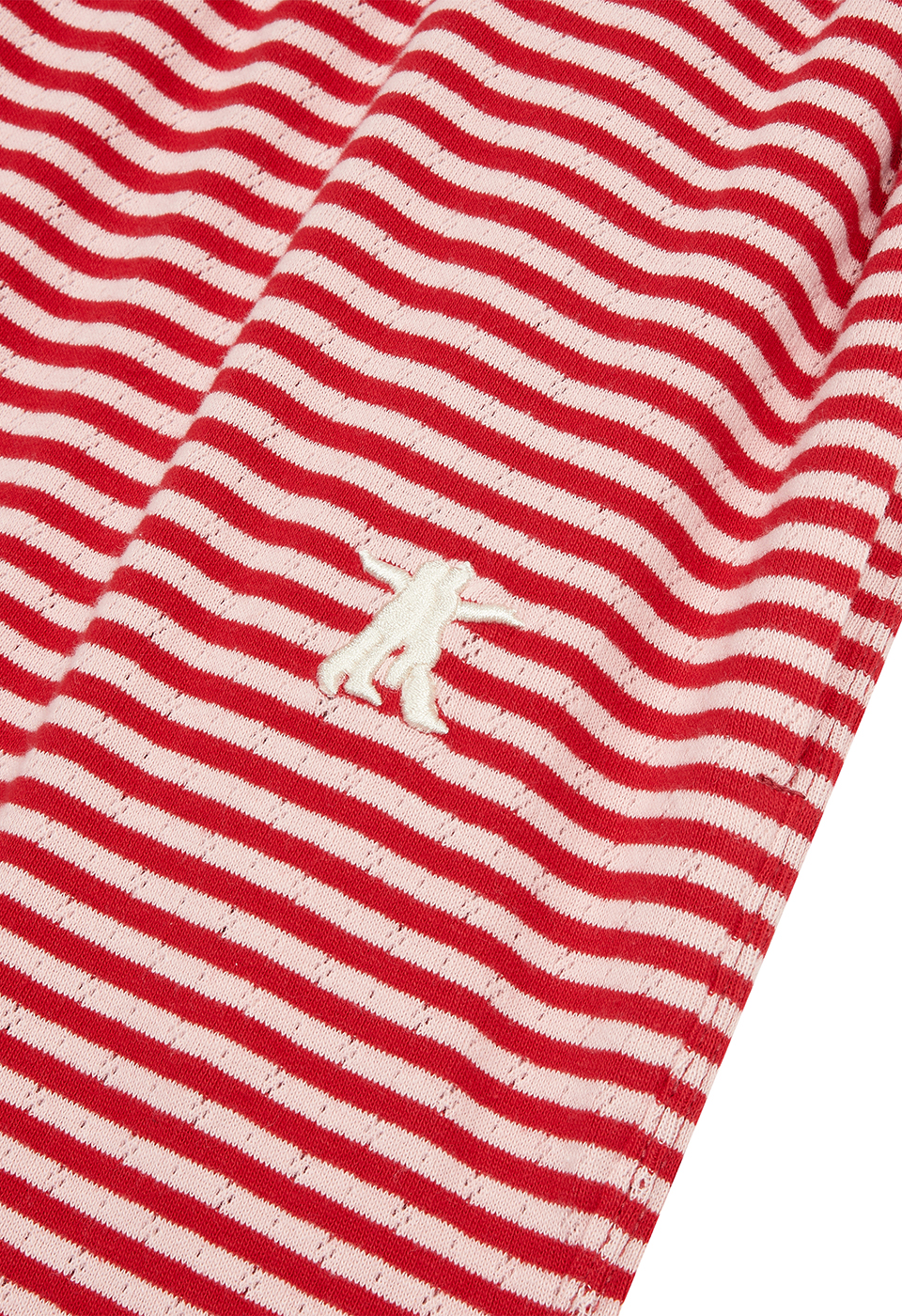 언뜻 보기만해도 클래시한 스트라이프 패턴과 사랑스러운 하트 패치 그리고 버튼 클로저 디테일이 돋보이는 파자마라고 할 수 있습니다. 상 하의 모두 코튼 소재로 제작되어 부드러우면서도 편안한 착용감을 느낄 수 있죠!