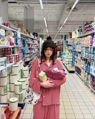 그걸 바로 전소미가 증명했습니다. 얼마 전 전소미는 해외의 한 마트에서 파자마를 입고 장 보는 모습을 개인 sns에 업로드해 화제가 되었는데요!!! 러블리한 무드가 돋보이는 스트라이프 패턴의 파자마 셋 업에 실 짜임이 돋보이는 트루퍼 햇 그리고 어그 부츠를 착용한 채 등장해 내추럴하면서도 귀여운 스타일을 선보였습니다.
