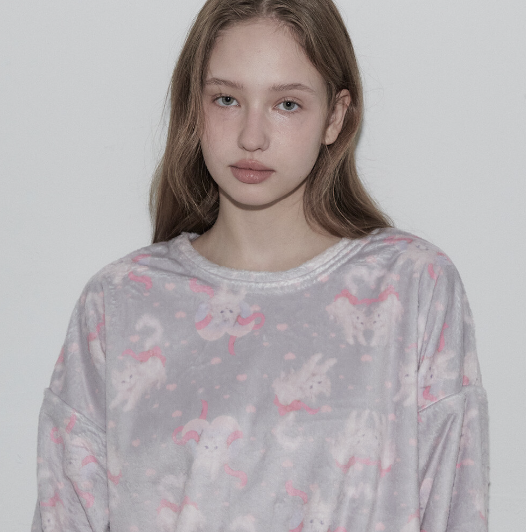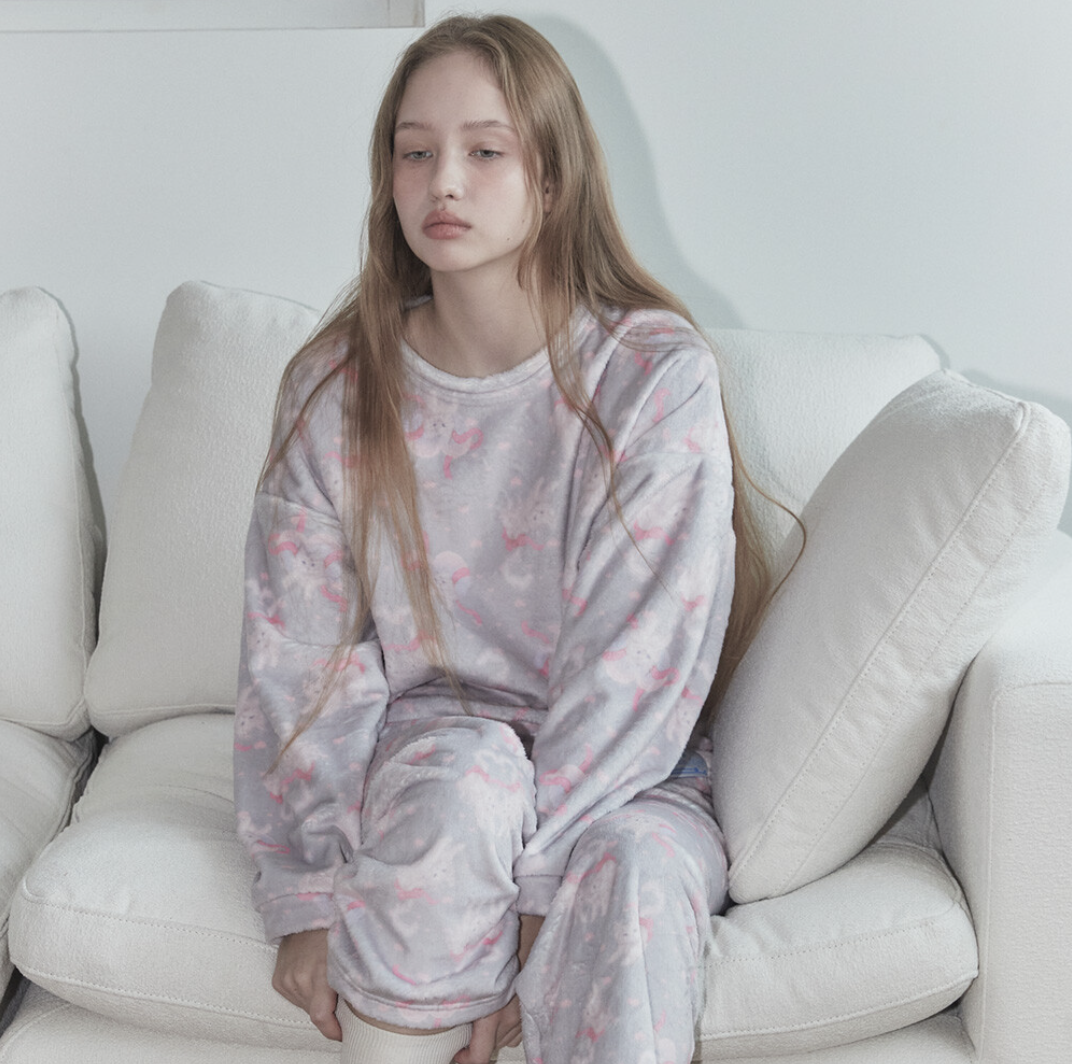 소녀소녀한 아이템이 많은 뮤즈모드! 이 오묘한 색 조합과 고양이는 여심을 저격하는 수면 잠옷이죠. 빈티지한 느낌 때문에 어렸을 때 입었던 파자마가 떠오르기도 해요.