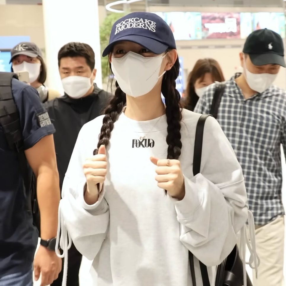 김지원은 가지런히 땋은 양갈래 머리에 맨투맨과 볼캡을 매치해 편안하면서도 사랑스러운 공항 패션을 선보였는데요. 비록 마스크를 착용하고 있긴 하지만 그녀만의 매력이 드러나는 것 같네요. 지금과 같은 선선한 가을 시즌에 맨투맨이라 불리는 스웻셔츠는 유용하게 활용할 수 있는 심플한 패션 아이템 중 하나죠!