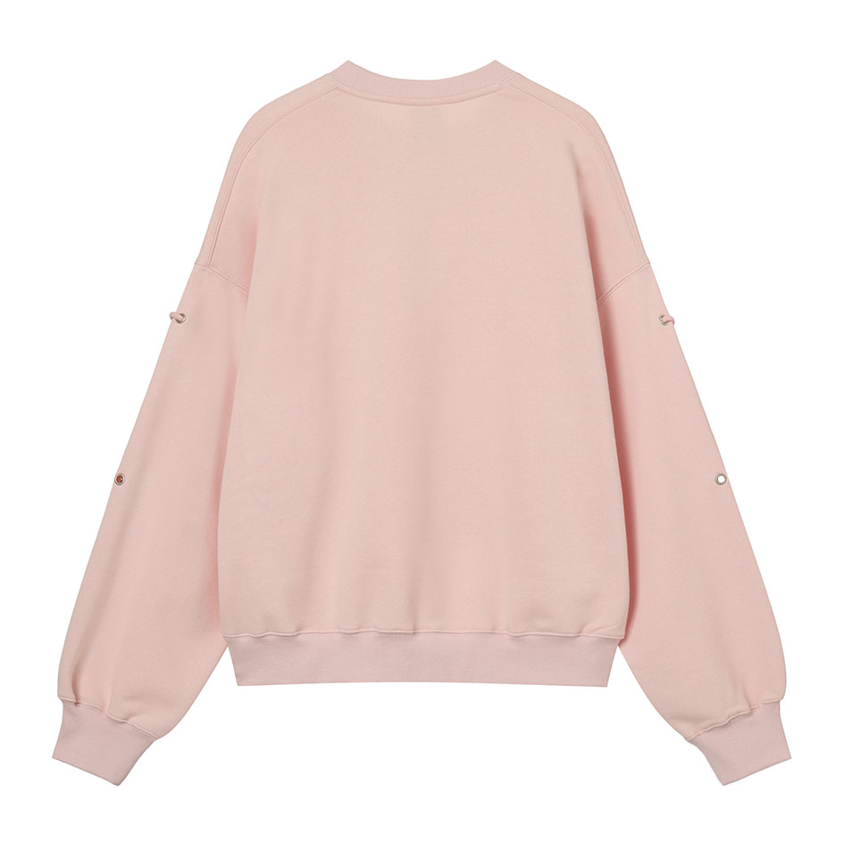아더 컬러로는 베이비 핑크 컬러가 있는데요. 그레이 컬러가 심플하면서도 캐주얼한 무드를 연출한다면 핑크 컬러는 더욱 사랑스러운 느낌을 선사해 줍니다. 그뿐 아니라 파쿠아의 리본 디테일 스웻셔츠의 경우 비록 원 사이즈지만 낙낙한 크기로 출시되어 그레이와 핑크 맨투맨 커플템으로도 좋을 것 같은데요.