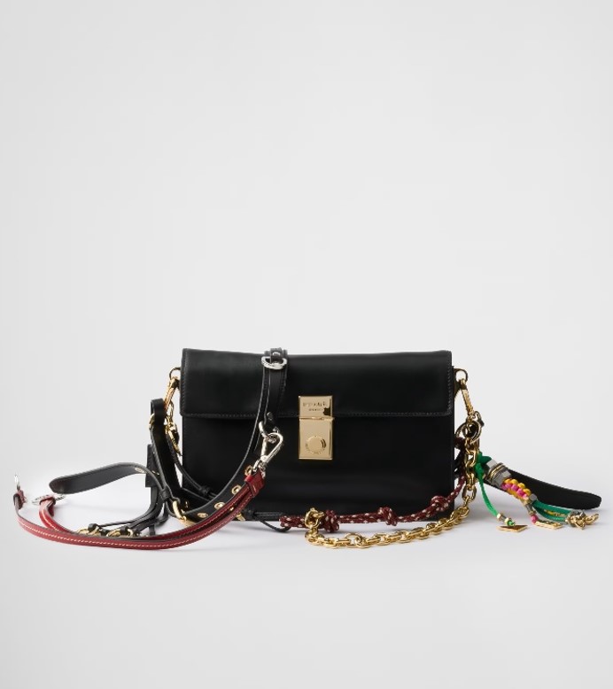 Black Prada Soft Sound Small Leather Shoulder Bag With Charms | PRADA
