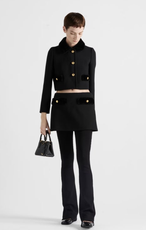 스커트 공홈 링크: https://www.prada.com/it/en/p/natte-miniskirt/P160YP_155H_F0002_S_OOO