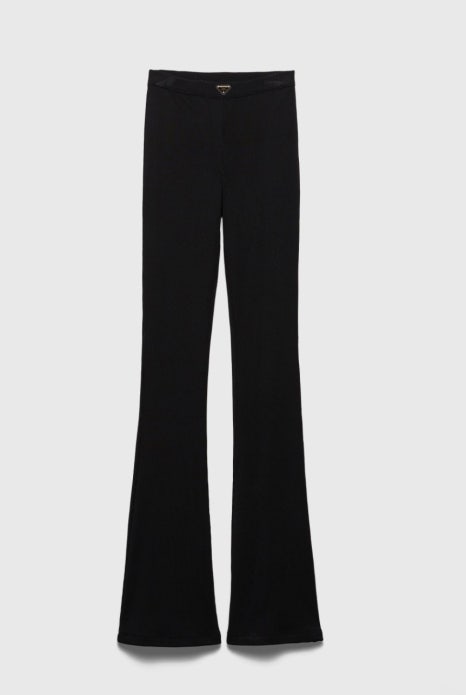 These ribbed knit jersey pants with sleek, contemporary lines are decorated with the enameled metal triangle logo.