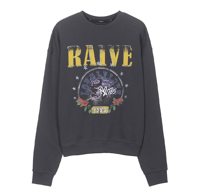 나나 인스타 속 발견한 아이코닉한 맨투맨은 레이브의 러브바이트 그래픽 스웻셔츠입니다.