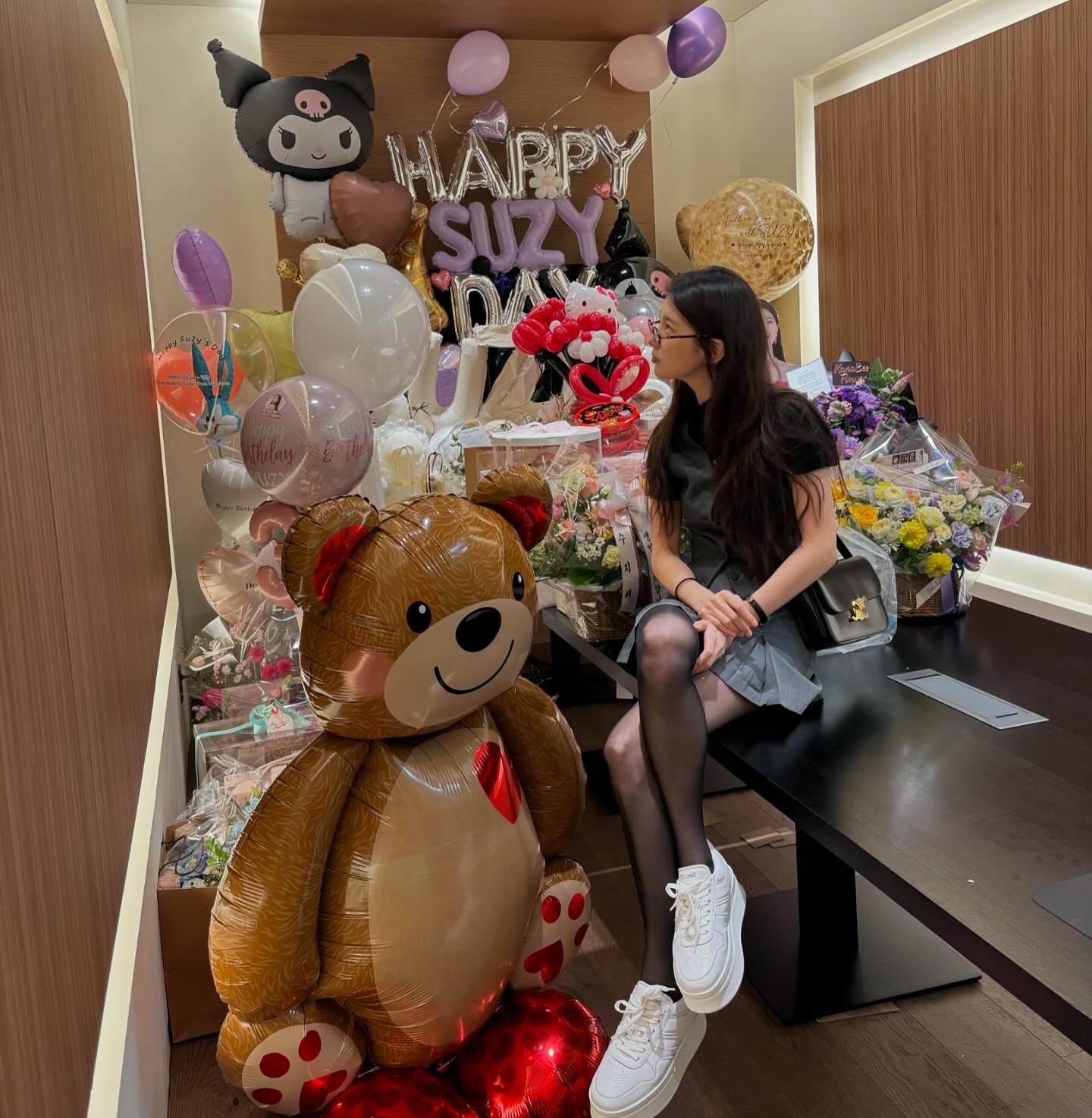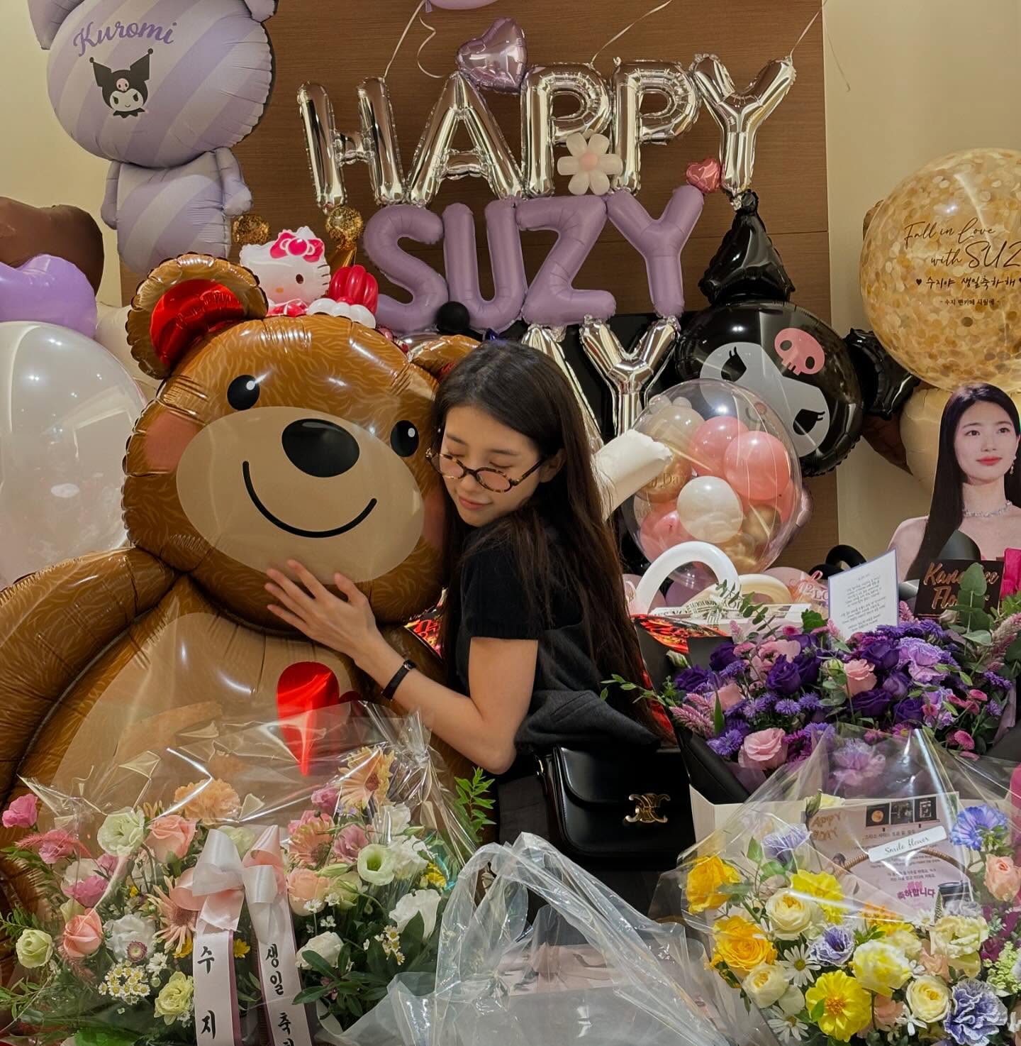 수지는 서른 번째 생일을 맞음과 동시에 명품 패션 브랜드 셀린느의 새로운 앰버서더로 선정되기도 했는데요. 수지가 지닌 세련된 이미지와 셀린느의 느낌과 잘 어울리는 것 같죠? 수지는 자신을 위해 준비해 준 파티에서 반팔과 스커트를 매치한 심플한 룩에 안경 그리고 셀린느 클래식 트리옹프 백을 매치했습니다.