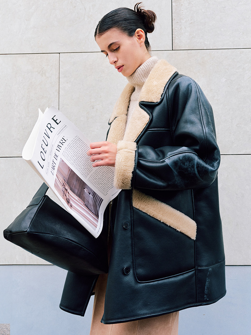 루에브르 Faux Leather Shearling coat-Jacket