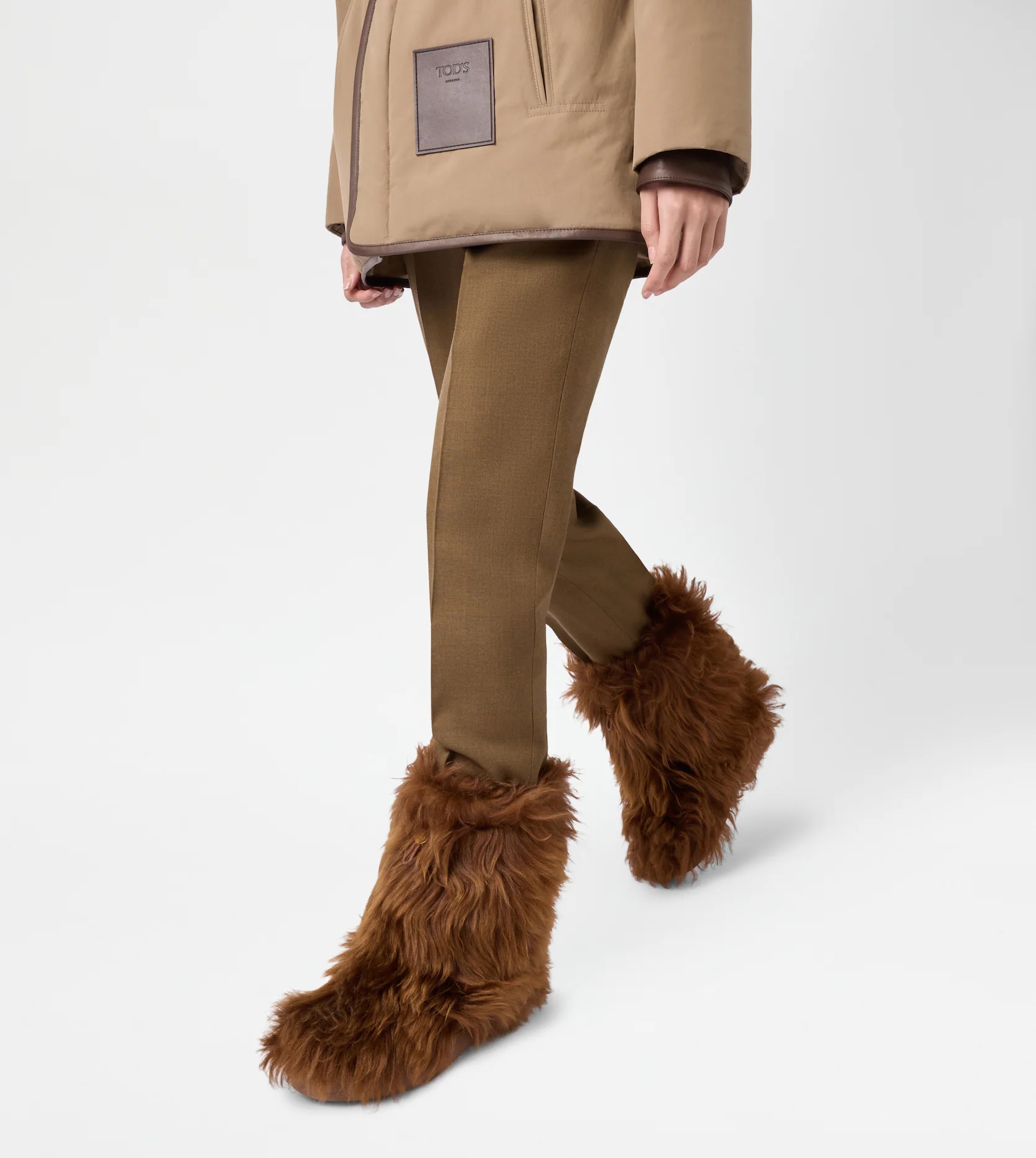 이는 전체적으로 부드러운 양가죽 소재로 제작되었으며 입구 부분에 스트링과 스토퍼가 달려있어 종아리 사이즈에 딱 맞게 착용할 수 있죠. 디자인뿐 아니라 방한 기능에도 신경을 쓴 제품이라고 할 수 있습니다.