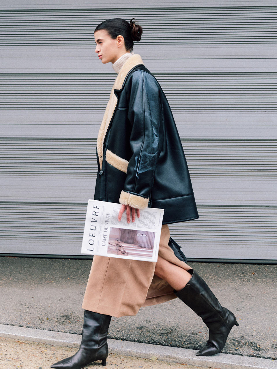 이나연이 착용한 오버사이즈 레더코트는 루에르브의 ‘Faux Leather Shearling coat-Jacket’입니다. 이전에도 혜리의 루에르브 코트에 대한 정보를 소개해드린 적이 있는데요, 루에르브가 아우터 맛집이라는 사실은 이제 공공연해진 듯하죠.