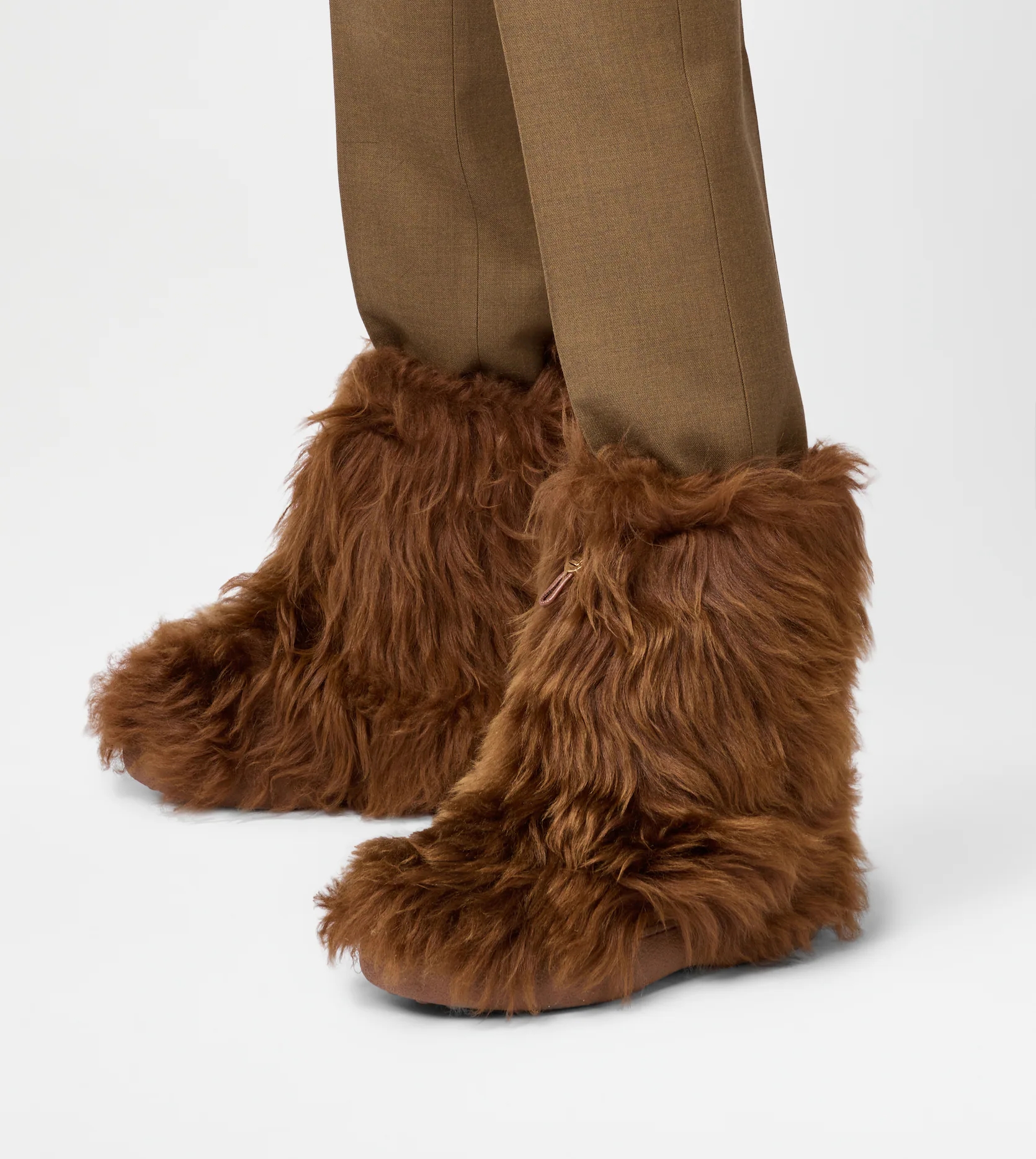 이는 전체적으로 부드러운 양가죽 소재로 제작되었으며 입구 부분에 스트링과 스토퍼가 달려있어 종아리 사이즈에 딱 맞게 착용할 수 있죠. 디자인뿐 아니라 방한 기능에도 신경을 쓴 제품이라고 할 수 있습니다.