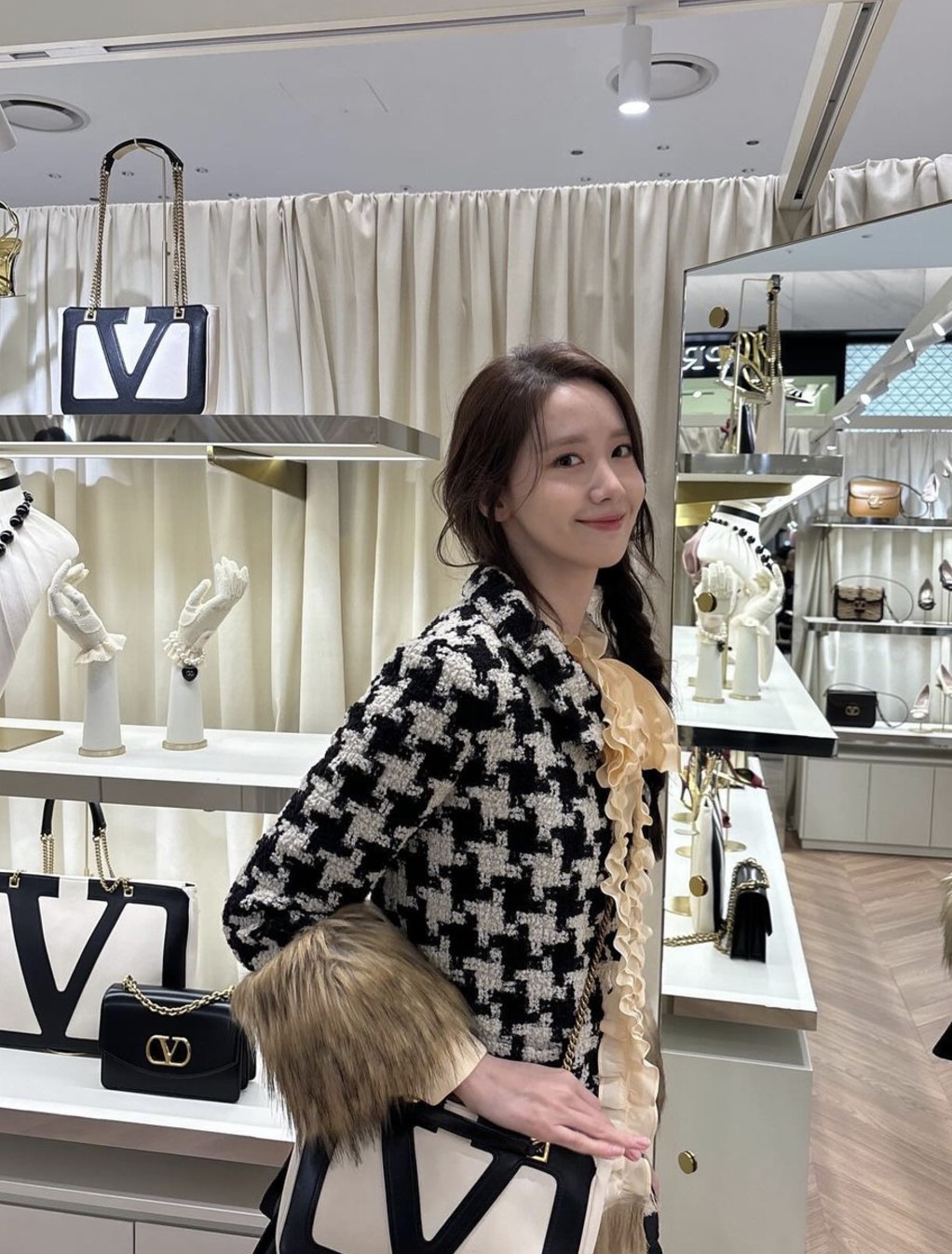 최근 윤아는 발렌티노의 2025 봄 컬렉션 팝업에 방문하였는데요, 청순하면서도 트렌디한 발렌티노 풀착장과 함께 여전한 전성기 외모를 보여주었습니다.