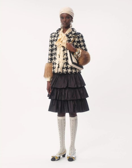 윤아는 이번 행사에서 위 모델의 착장을 참고한 것으로 보이는데요, 이때 걸친 자켓은 ‘매크로 피에 드 풀 트위드 재킷’입니다.