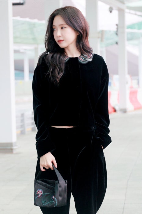 손나은은 얼마전 뉴욕에서 진행된 조르지오 아르마니 2025 S/S 컬렉션 런웨이 및 아르마니 부티크 오프닝 이벤트 참석을 위해 인천국제공항에 등장했습니다. 물론 조르지오 아르마니 착장을 입은 채 말이죠! 이 날 손나은은 고급스러운 느낌이 물씬 풍기는 벨벳 소재 탑과 팬츠 그리고 플랫슈즈를 매치해 시크하면서도 모던한 분위기를 연출했습니다.