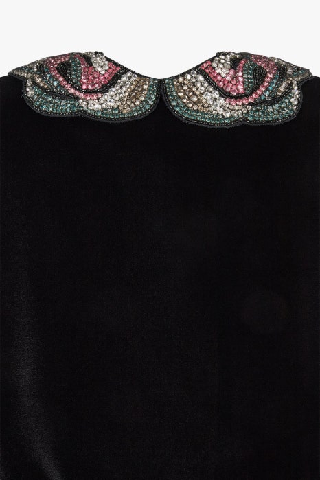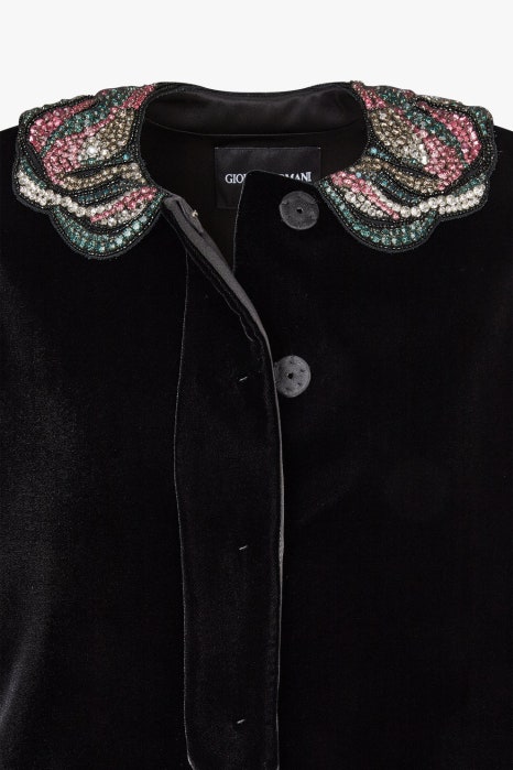 조르지오 아르마니는 명실 상부 이탈리아 하이엔드 럭셔리 브랜드입니다. 조르지오 아르마니에서 최근 선보인 벨루아 벨벳 자켓은 우아하면서도 미니멀한 무드가 돋보이는데요. 카라 부분의 멀티 컬러 블랙 비즈로 이루어진 화려한 자수 디테일이 포인트입니다.