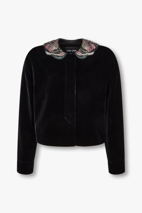 조르지오 아르마니 핫픽스 카라 벨루어 쇼트 자켓