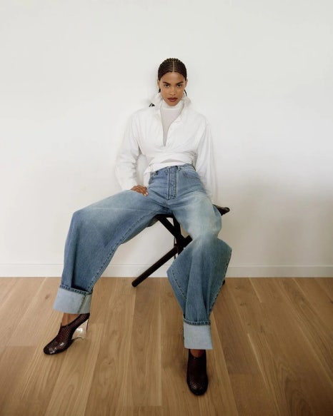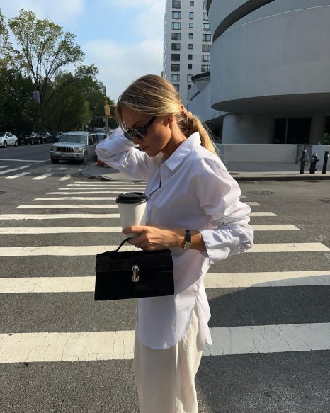 반면 클레어 로즈는 화이트 셔츠를 활용해 편하고 캐주얼한 원마일 웨어 룩을 선보였다. 화이트 셔츠와 팬츠의 톤을 비슷하게 통일한 뒤 셔츠를 바지 밖으로 뺀 뒤 소매를 자연스럽게 걷어 올려 내추럴한 무드를 강조했다.