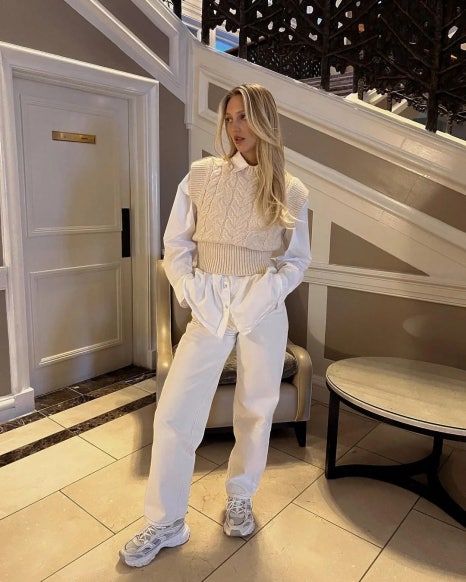 조금 더 부드럽고 산뜻한 느낌을 원한다면 조지아 허스트의 룩을 체크해 볼 것. 그녀는 화이트 셔츠에 아이보리 컬러 스웨터를 더해 부드러운 분위기를 연출했다. 이처럼 화이트 셔츠와 크게 다르지 않는 크림 컬러 니트 톱을 활용하면 더욱 우아한 아웃핏을 완성할 수 있다는 점도 기억해 둘 것.
