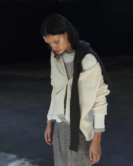 덴마크의 라이프스타일 브랜드 '아이아유'에서 선보인 레이어링 룩은 카디건을 가장 내추럴하고 세련되게 입는 방법을 보여줘요.