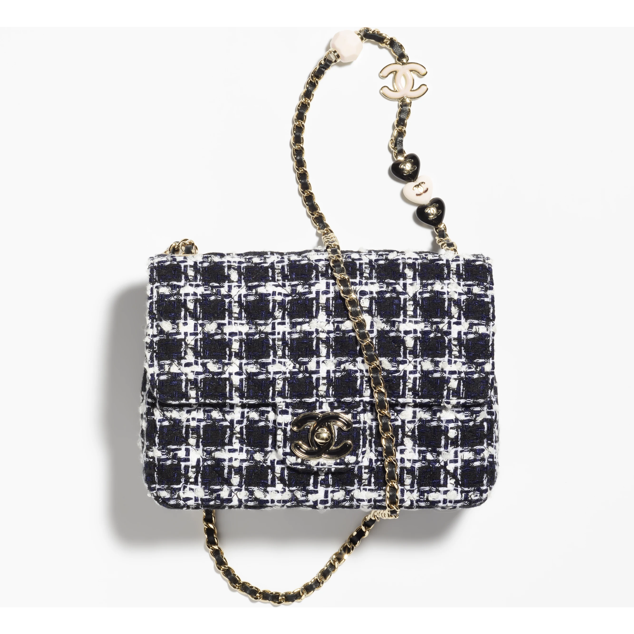 트위드와 레진 골드 메탈로 구성된 가방으로 크로스 백으로도 가능하고 제니처럼 호보 백으로 연출도 가능하다. 트위드 명가 샤넬 답게 고급스러우면서도 우아한 트위드 짜임이 매력적인 제품 중 하나. 스트랩의 아기자기한 샤넬 마크와 액세서리가 사랑스러움을 더해준다. 트위드 소재 특성상 겨울은 물론 봄, 가을 스타일링에도 유용하게 활용하기 좋은 아이템.