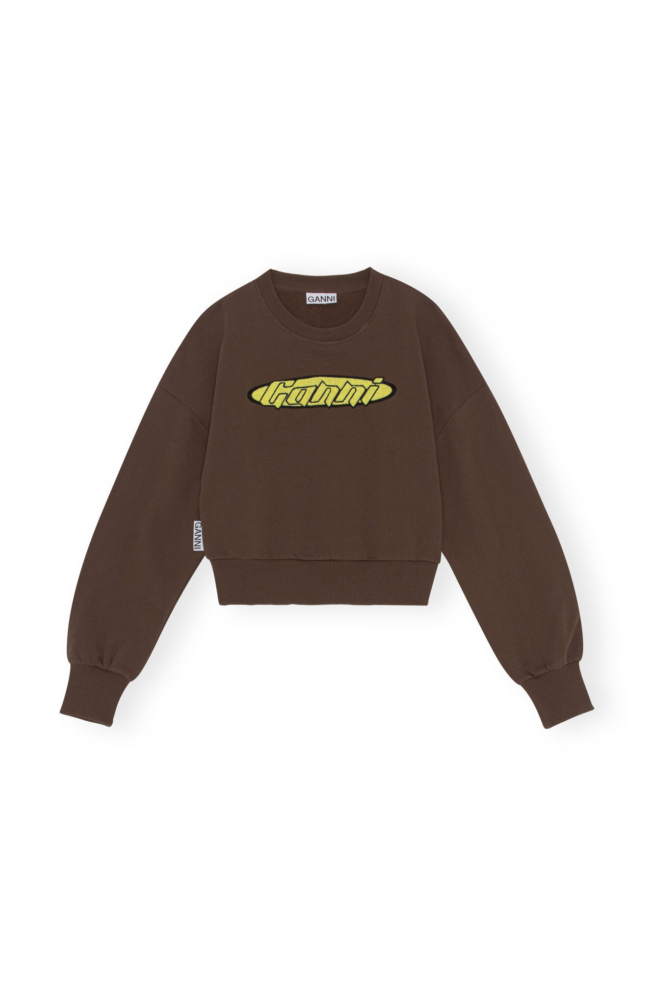 인증받은 유기농 면으로 제작된 제품으로 부드러운 질감이 특징이다. 가니의 아트워크 스웻셔츠는 라운드 네크라인과 드롭 숄더로 체형 커버에도 도움을 준다. 그뿐 아니라 중앙에 가니 로고가 시어링 원단으로 덧데어 져 있어 포인트가 되어 준다. 제니처럼 와이드 팬츠와 함께 매치하면 스트릿 캐주얼 룩을, 스커트와 함께 매치하면 페미닌 하면서도 사랑스러운 룩을 완성할 수 있다.