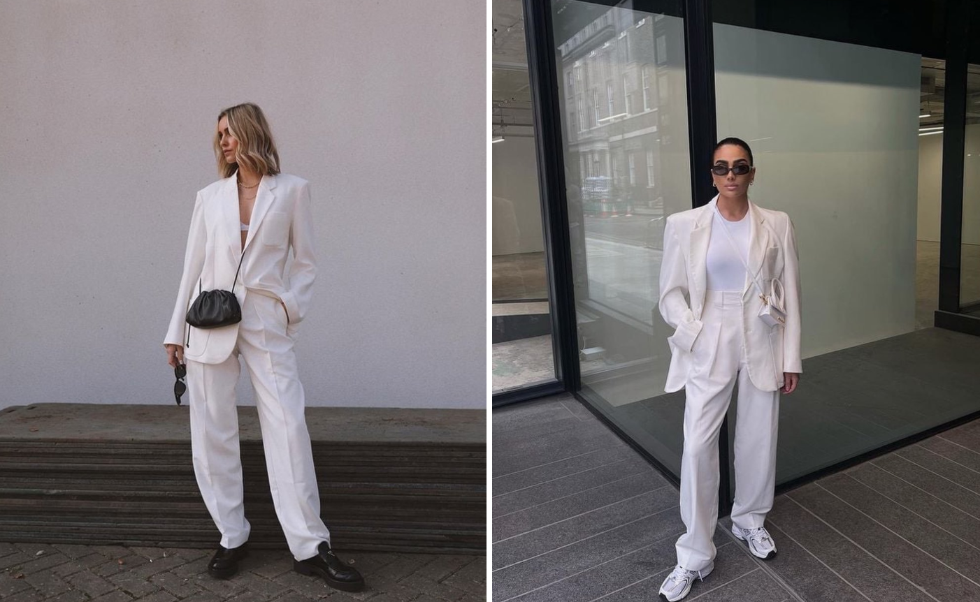 화이트 룩은 화사하고 깔끔한 느낌을 주긴하지만 체형 보정에 취약해 아무나 쉽게 소화할 수 없는 화이트 룩이지만 타이트하지 않은 낙낙한 느낌의 슬랙스와 함께라면 충분히 가능하기 때문이다. 올 화이트 룩이 조금 심심하게 느껴진다면, 재킷이나 슬랙스의 소재를 통기성이 좋은 린넨이나 새틴 등으로 바꾸어 보는 것도 좋은 방법!