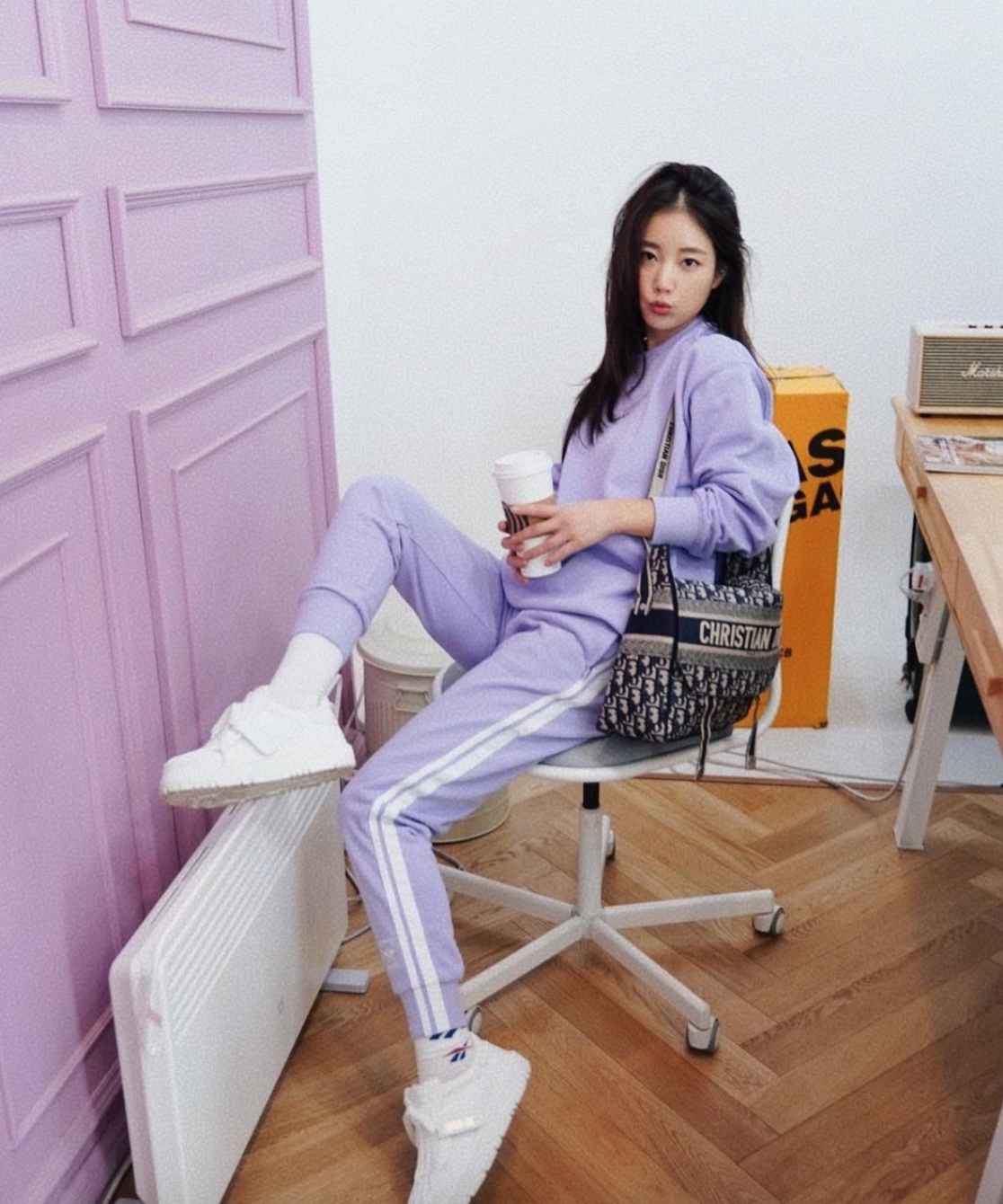 약간 낙낙한 조거 팬츠를 착용한 한예슬과 달리 기은세는 살짝 핏되는 조거 팬츠를 착용해 더욱 여성스러운 무드를 선보였는데, 조거 팬츠와 맨투맨을 셋 업으로 입을 때 그녀처럼 페미닌한 백과 함께 매치하는 것도 좋은 방법. 조금 더 힙하면서도 트렌디한 아웃핏을 줄 수 있을 것이다.